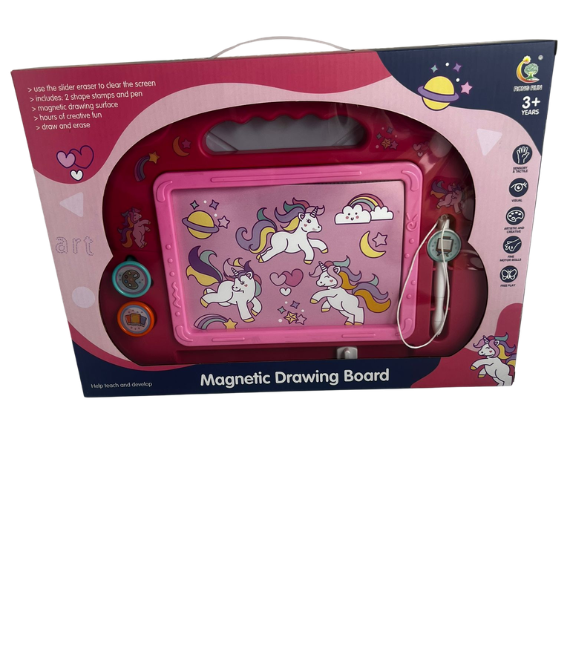 A fun magnetic drawing board that allows kids to draw and write easily without any mess. It features a quick erase function, making it reusable and perfect for creative learning. Features: • Reusable with easy erase function • Boosts creativity and imagination • Helps kids learn writing and drawing • Includes a special pen for easy use • Lightweight design with carry handle