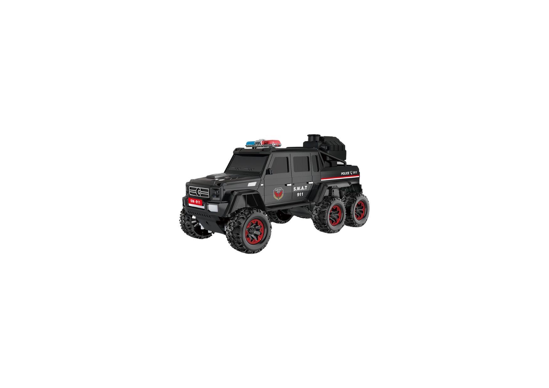 Remote control police car with a powerful and impressive design, featuring realistic lights and sound, along with a steam spray function for extra fun. Perfect for exciting chases and races.