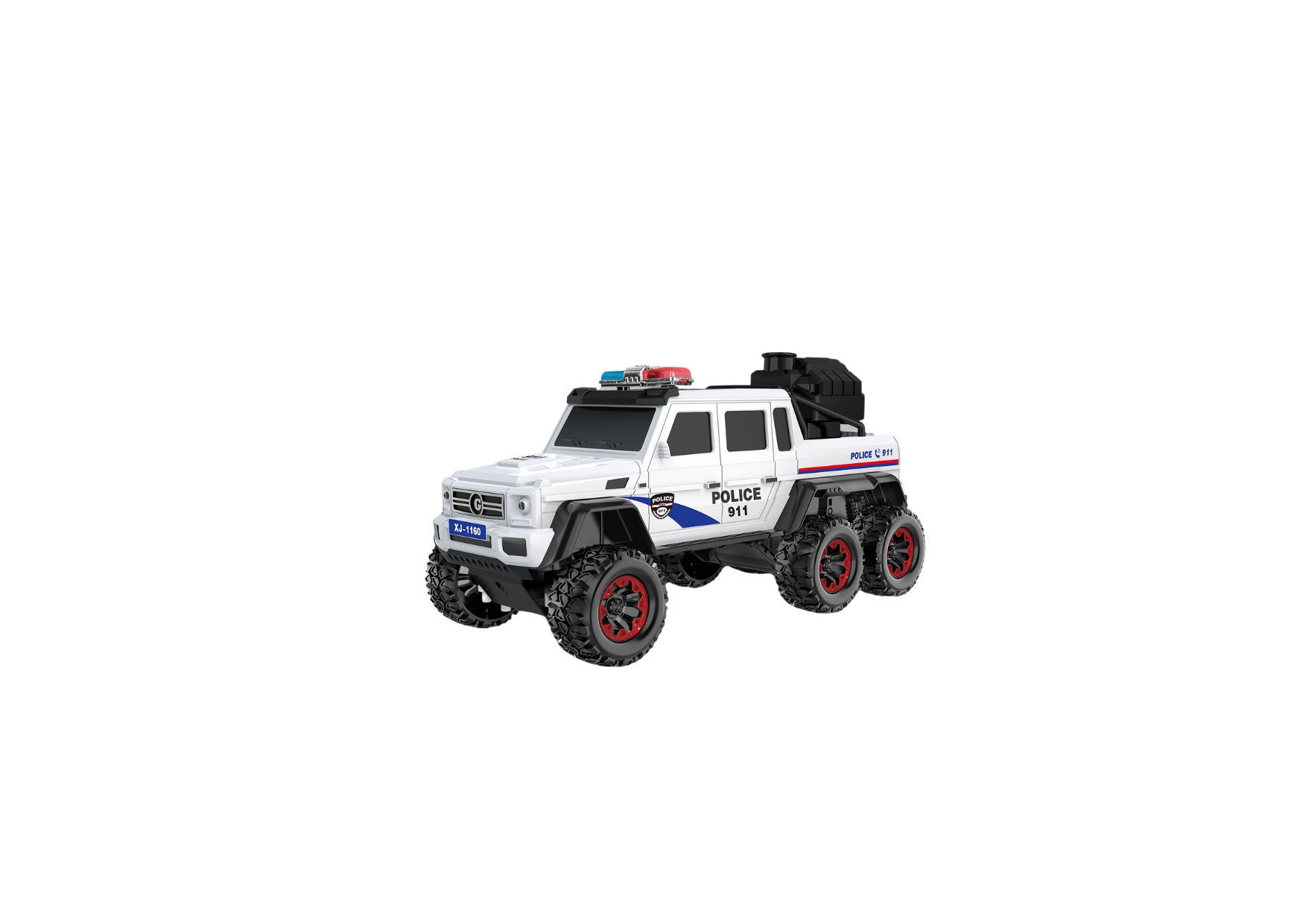 Remote control police car with a powerful and impressive design, featuring realistic lights and sound, along with a steam spray function for extra fun. Perfect for exciting chases and races.